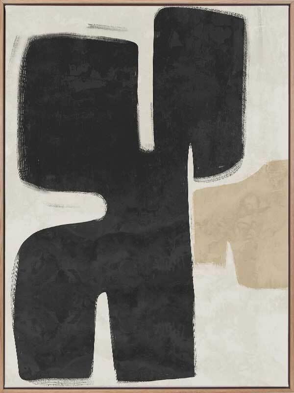 Poised Black Canvas Art Print – Funky, yet calm in its minimalistic approach, this abstract artwork uses rounded shapes and visible brush strokes for an organic, textured feel. A stripped-back palette of black, beige, and sand means this piece suits many interior styles. Surrounded by calming colours and scenery, this collection brings a relaxed energy to any space. Featuring softened abstract shapes, beachy landscapes, and some tropical undertones, these pieces bring a sophisticated, laid-back feel to your space, using a soft colour palette with some bold colour to easily incorporate with many interior styles. Disclaimer: Colours of Urban Road products may vary due to device display differences, monitor settings, inherent product variations, lighting conditions, and screen calibration. While we strive for accuracy, slight variations may occur. For any concerns, contact our customer support. Your satisfaction is our priority. STRETCHED CANVAS Urban Road's stretched canvas fine art prints are professionally printed on polycotton artist canvas, using archival inks and then stretched and gallery wrapped. This means the image is stretched around a 38mm frame to create a seamless, museum-quality finish. All stretched and box framed art prints arrive ready to hang. SHADOW BOX FRAMES We also offer the option to add a shadow box frame to your Urban Road canvas art print. A little different from a traditional framed print, the canvas sits within the box frame with a 5mm gap, creating a sophisticated shadow effect between the frame and the canvas. Our solid timber box frame mouldings are 10mm wide, and 55mm deep, and add approximately 40mm to the length and height of the listed canvas size. ROLLED CANVAS ART At Urban Road, we also offer you the option to purchase your canvas art print unframed to allow you to have it framed your own way. As with our stretched and box framed canvas products, our rolled canvas prints are professionally printed on durable, museum-quality, matte coated polycotton canvas and made to order. Our rolled canvas products are printed to the listed stretched size, and come with an additional 45mm mirrored edge plus another 60mm white border to allow for gallery wrapping.