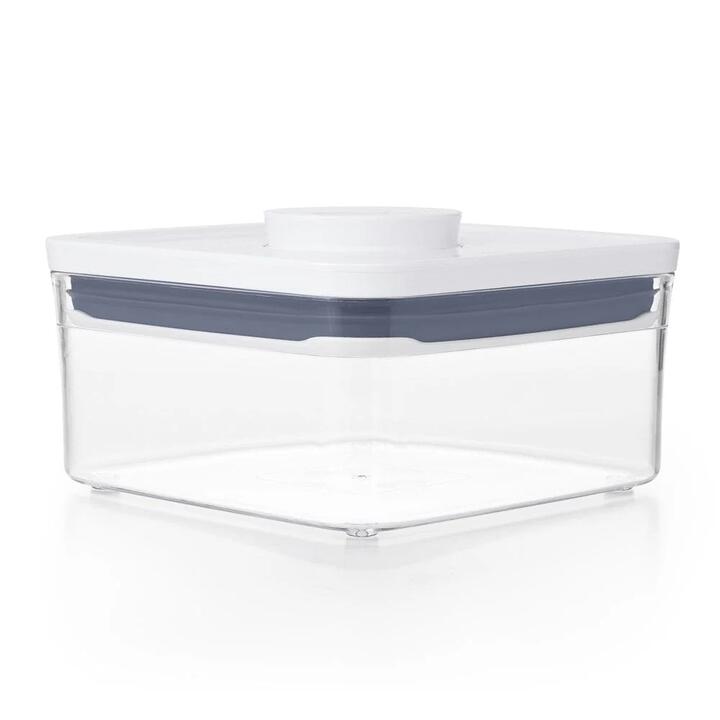 VALID ONLINE ONLY. Keep food fresher for longer with the OXO POP 2.0 Big Square Mini 1L Enjoy the ultimate in kitchen organisation with the OXO POP 2.0 Big Square Mini 1L. Made from durable BPA-free plastic, this container includes a resilient silicone seal that protects food and helps to keep it fresh for longer. With a 1L capacity the OXO POP 2.0 Big Square Mini 1L is the perfect size for storing smaller batches of ingredients such as trail mix, tea bags or granola. Thanks to the clear plastic construction, you see exactly what your pantry contains, while the pop lid allows you effortlessly retrieve the contents from within. Designed for easy storage, the OXO POP 2.0 Big Square can be stacked together with other similarly shaped OXO POP containers, leaving you with a neat and efficient kitchen storage system. Features Designed for modular use and it is stackable with other OXO POP containers – Made from durable BPA-Free plastic with silicone seals to keep contents fresh – Push-button mechanism creates an air tight seal within the container with just one push – The lids come easily apart for thorough cleaning – 1L Capacity is ideal for storing staples such as trail mix, tea bags or granola- Ideal for keeping dry foods fresh and organising the pantry in your kitchen – Top rack dishwasher safe for easy cleaning Dimensions 15 x 15 x 9cm