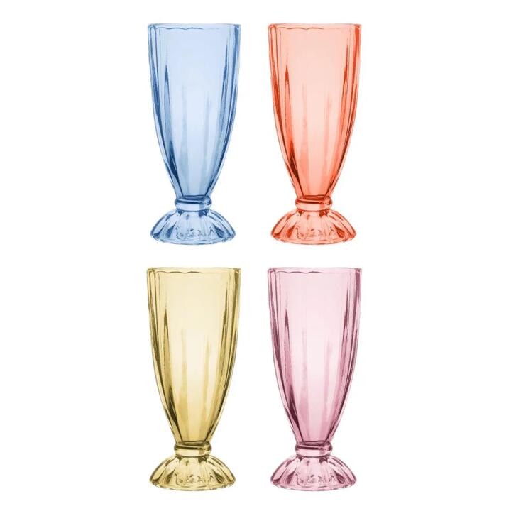 Theres always room for dessert and with Porto Dessert Set of 4 Milkshake Glasses, the most important course of the meal has its own special dishes. Made of glass and offering four distinct options in an assorted set of four gelato colours, Dessert is also available in Banana Split Dishes, Sundae Cups and Ice Cream Cups. Which dessert will you choose? Features • Beautifully gift boxed ready for gifting What Am I Buying 4 x Dessert glasses Materials Soda lime glass