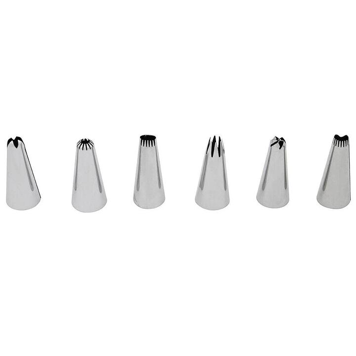 Perfect your cake decorating with the Soffritto Professonal Bake Stainless Steel Nozzle Set of 6Quality stainless steel nozzleDishwasher safe for easy cleaningCreates beautiful patterns for your icingIncludes 6 nozzles in a setEach nozzle details a different shape and designWhat Am I Buying6 x Soffritto Professonal Bake Stainless Steel NozzleMaterialStainless Steel