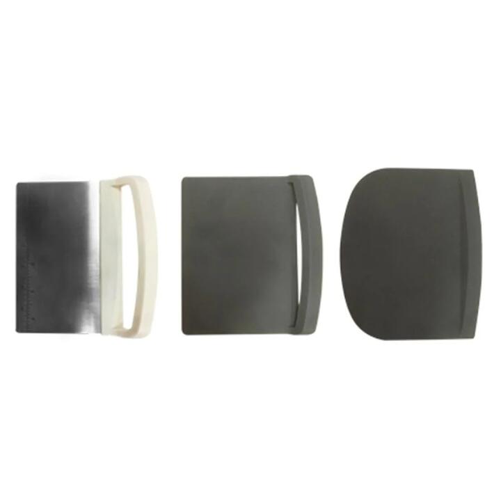 An essential accessory for anyone who loves to bake at home, the Soffritto Professional Bake 3-in-1 Bench Scraper Set is the handy little set that will make your cooking tasks even easier. Comprising of 1 x steel scraper and 2 x silicone scrapers, the Soffritto Professional Bake Bench Scraper Set allows you to efficiently measure and portion dough, clear flour clumps and scraps from your work bench, and even scrape down the sides of bowls and mixing dishes. A truly versatile accessory, the stainless steel scraper even features measure markings in both centimetres and inches! Perfect for handling any dish or surface without leaving marks of damage, the Soffritto Professional Bake Bench Scrapers even nest together for convenient and safe storage inside cupboards, draws and pantries when not in use. Dishwasher friendly for easy cleaning, this set is the ultimate baking accessory. Features • A must-have accessory for any avid baker- Set comprises of 3 bench scrapers that neatly nest together for efficient and space-saving storage- A totally versatile accessory that is great for sectioning dough, clearing flour and dough clumps from your counter, or scraping the sides of mixing bowls – Crafted from the finest quality food grade stainless steel and siliconesManufacturedMade in China