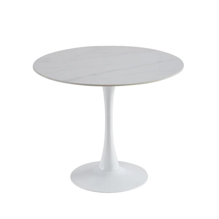 Meet the Mignon Round Dining Table —a timeless classic reimagined for modern living. Picture this: a sturdy matte ceramic top that laughs off scratches and heat, paired with a sleek metal base that exudes understated elegance. Whether you're hosting a dinner party or enjoying a quiet meal, this table adapts to your needs with its versatile size options. Its round shape invites conversation, while its neutral design lets you play mix-and-match with your favorite chairs. More than just a table, the Mignon is a statement of enduring style and practicality, designed to be the heart of your home for years to come. Features:, Durable Matte Ceramic Top : Scratch- and heat-resistant for everyday use, combining beauty with practicality. Sleek Powder-Coated Frame : A modern metal base that adds a touch of sophistication and durability. Available in Multiple Sizes : Designed to fit any dining space, offering flexibility for small or large gatherings. Timeless Design : A versatile round shape that complements a variety of interior styles and chair designs. Easy to Maintain : Wipe clean with a dry cloth—avoid harsh chemicals or abrasive materials to preserve its finish. Dimensions, W 90 x D 90 x H 76 cm, Dispatch Timing, Normally dispatched within 3 business days, Notes. Note:- Actual product colours may vary due to lighting, studio photography, room conditions, different screens on various devices. – All our furniture product are flat pack (assembly required) for safe handling purposes.