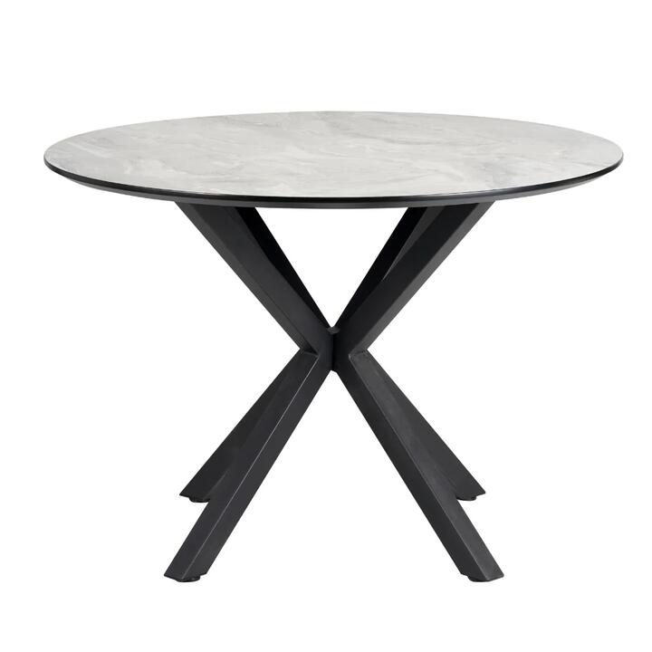 The Nevya Round Table is as user-friendly as it gets, combining practicality with modern design. Featuring a scratch-resistant laminate top, it's available in three stylish colors and is designed for easy cleaning and maintenance. Built for everyday use, this table offers durability and practicality without compromising on style. With its simple yet elegant design, the Nevya Round Table delivers exceptional value, making it the perfect addition to any home. Whether for casual meals or family gatherings, this table is ready for whatever life brings. Features:, Scratch-Resistant Laminate Top : The durable laminate surface resists scratches and stains, ensuring the table stays looking new even with daily use. Three Stylish Color Options : Choose from a range of modern finishes, including Grey Cloud, to match your existing decor and personal style. Premium Materials : Features a laminated MDF top with a marble effect and a sturdy black powder-coated metal frame for a perfect blend of elegance and durability. Easy Maintenance : Simply wipe clean with a dry cloth—no need for harsh chemicals or abrasive materials, making it ideal for busy households. Compact and Functional Design : The round shape fits seamlessly into small spaces while providing ample surface area for meals, work, or gatherings. Dimensions, W 110 x D 110 x H 76 cm, Dispatch Timing, Normally dispatched within 3 business days, Notes. Note:- Actual product colours may vary due to lighting, studio photography, room conditions, different screens on various devices. – All our furniture product are flat pack (assembly required) for safe handling purposes.