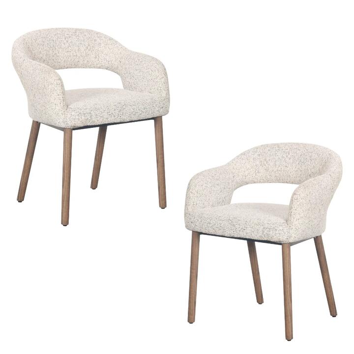 Introduce a blend of modern elegance and comfort to your dining space with the Dining Chair in Sand. This set of two chairs is crafted to enhance your dining experience, offering a perfect balance of style and functionality. The soft sand-colored upholstery provides a chic, neutral tone that complements any decor, while the brown wood legs add a touch of organic charm. Designed for both aesthetics and comfort, this Dining Chair is an ideal addition to your dining room, ensuring your guests sit in style. Features, Made with high-quality materials, these chairs are built to last, ensuring they remain a staple in your home for years, Cushioned seat and backrest provide excellent comfort, making it ideal for long dinners and conversations, The brown finish of the wooden legs adds a warm, organic feel, creating a harmonious blend with the upholstered seat, The unique backrest design with a cutout adds a contemporary flair and visual interest to your dining space, Conveniently sold as a set of two, these chairs provide a coordinated look for your dining space, enhancing its aesthetic appeal, Dimensions, Overall: W 54 x D 59.5 x H 74.5 cm, Seat Height: 49 cm, Arm Height: 64 cm, Dispatch Timing, Normally dispatched within 3 business days, Notes. Note:- Actual product colours may vary due to lighting, studio photography, room conditions, different screens on various devices. – All our furniture product are flat pack (assembly required) for safe handling purposes.
