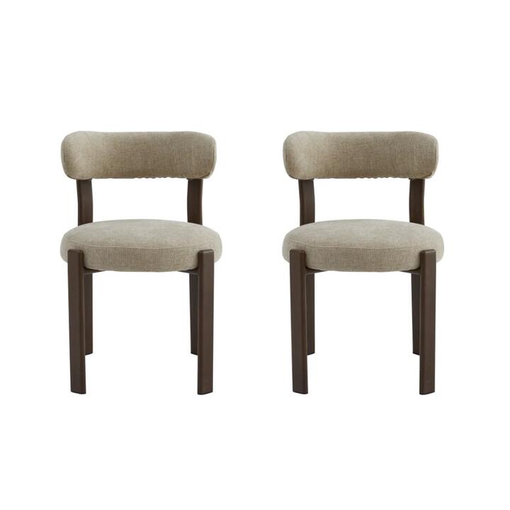 Description Enhance your dining area with this set of 2 chenille fabric dining chairs in a timeless beige tone. The soft, textured chenille upholstery brings a cozy yet sophisticated touch, making it an elegant addition to any interior. Crafted with walnut wood-effect coated metal legs, the chairs combine the warmth of natural wood aesthetics with the durability of metal construction. Designed with comfort in mind, the ergonomic seat and backrest provide support for everyday meals, entertaining guests, or even creating a stylish home office setup. Compact and versatile, these chairs complement a variety of interiors, from contemporary to Scandinavian-inspired spaces. Features, Set of 2 dining chairs packaged together—ideal for dining rooms, kitchens, or casual seating areas, Upholstered in soft beige chenille fabric for a cozy, elegant, and modern look, Walnut wood-effect coated metal frame blends natural wood appeal with lasting durability, Ergonomic seat and backrest design provide comfort for extended dining or work sessions, Neutral color palette pairs seamlessly with a wide range of interior styles, Compact yet stylish design , perfect for apartments, dining nooks, or smaller spaces, Easy care and maintenance —wipe clean with a dry cloth; avoid abrasive materials to protect finish, Strong and stable construction ensures reliable seating and long-lasting use, Dimensions, Overall: W 51 x D 54 x H 73 cm, Seat Height: 48.5cm, Dispatch Timing, Normally dispatched within 3 business days, Notes. Note:- Actual product colours may vary due to lighting, studio photography, room conditions, different screens on various devices. – All our furniture product are flat pack (assembly required) for safe handling purposes.