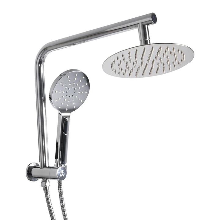 DESCRIPTION Relax as the world slips away. Feel rejuvenated, as if you were bathing under a waterfall. Close your eyes and pretend you are in a tropical wonderland. Look forward to showering again. Everyone likes to shower differently. Choose from the luxurious rain shower or select one of three modes with the handheld shower head and hose. Get yourself clean in the manner you like. Don?t fall for chrome plated plastic showers. Almost everything is made of brass or 304 stainless steel. This is quality you can afford to splurge on . Trust the longer warranty. You can try installing this yourself or get a plumber involved. Either way, it shouldn?t take too long. All parts are included to get you up and showering. Bathe under simulated rainfall shortly. The waterfall head can swivel 360 degrees and tilt up to 15 degrees . You aren?t locked into one angle like others. You also have 30% reduced water consumption compared to some similar models. Key Features, 25cm Steel rainfall shower head, 360? Swivel and 15? tilt adjustable shower head, Handheld shower head with 3 spray patterns, Flexible 1.5m stainless steel hose, 180? Swivel shower head holder, Built-in mesh filter, Wall mounted with G 1/2? female end, AU standard AS/NZS 6400, Watermark certified and WELS approved, 5-Year warranty, Easy to assemble, SPECIFICATIONS, WELS Star rating: 3-star, WELS Licence number: 1379, WELS registration number: S17568, Flow rate: 9.0L/M, Model name: 86H56-CHR-250, WaterMark Licence No: WM74752, Material: Brass, 304 stainless steel and ABS, Finish: Electroplating chrome finish, Water hose length: 1.5m, Dimension, Overhead shower head : 250mm x 250mm, Handheld shower head: 120mm x 254mm, Colour: Silver, PACKAGE CONTENT, 1 x Overhead Shower Head, 1 x Handheld Shower head, 1 x Connected Hose, 1 x Diverter, 1 x Hex Wrench, 1 x Set of Silicone Outlets, 1 x Mesh Filter, 1 x Instruction Manual. Note:- Actual product colours may vary due to lighting, studio photography, room conditions, different screens on various devices.