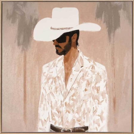 Rodeo Rhythm Canvas Art Print – The minimalist style of this artwork lends beautifully to spotlighting the well-dressed cowboy, donned in a wide-brim cowboy hat, textured blazer, belt, and sunglasses. A muted palette of earthy browns, tans, and white depict the dusty, warm air at the home on the range, typical of the stoic and resilient spirit of the American West. Discover the Wild & Fearless art collection, evoking the wildest dreams of cowboys and desert sunsets, blending the latest trends in interior design into a vibrant tapestry of colour and culture.