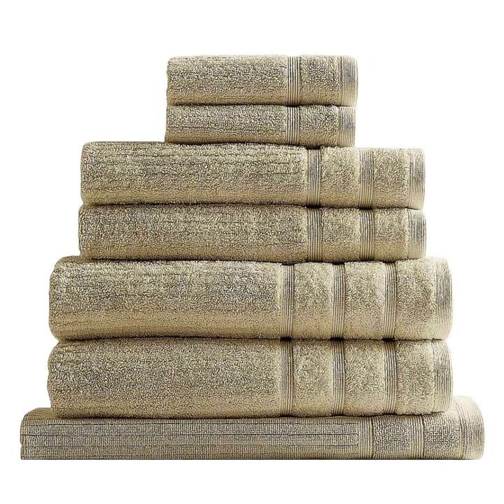 Enjoy the luxurious soft touch of the Royal Comfort Eden Egyptian Cotton 8 Piece Towel Set! Expertly crafted from premium quality Egyptian Cotton, the Eden towel set by Royal Comfort is a must have bathroom upgrade. Complete with a generous 600GSM weight, these towels offer optimal softness, absorption and durability. Featuring a gorgeous finish with a stylish double border, the Eden Egyptian Towels come in multiple contemporary, yet classic colours to compliment any bathroom. Comprising of two bath towels, two hand towels, two face towels, one bath mat and one hand glove, the Royal Comfort Eden Egyptian Cotton 600GSM 8 Piece Towel Set has everything you need! Features Woven with high-grade 100% pure cotton Experience ultimate softness, colour lustre, absorption and durability Each piece features a vertical rib, in a generous 600GSM weight Beautifully finished with a stylish double border Super soft on the skin while absorbing wetness with ease Available is a selection of classic, yet contemporary colourways Ideal for everyday use for the whole household Material Egyptian Cotton Dimensions Bath Towel: 69 x 137cm Hand Towel: 40 x 60cm Face Towel: 33 x 33cm Bath Mat: 50 x 80cm Hand Glove What Am I Buying 2 x Bath Towels 2 x Hand Towels 2 x Face Towels 1 x Bath Mat 1 x Hand Glove