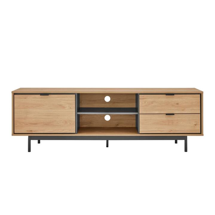 This generously sized entertainment unit is perfect for organizing your home. It features open and closed storage, a contemporary color palette, and a minimalist Japanese-inspired design. The unit is made from MDF and melamine, and has aluminium alloy handles. Note:- Actual product colours may vary due to lighting, studio photography, room conditions, different screens on various devices. – All our furniture product are flat pack (assembly required) for safe handling purposes.