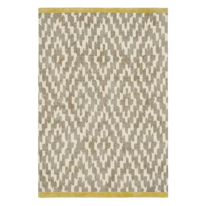 With a relaxed geometric design of slate diamond shapes and a pop of sunflower yellow edging, the Uteki rug would fit perfectly into any modern home. This minimal colour palette creates a Scandinavian feel. Using a new technique specifically developed for Scion, designs are screen-printed on to 100% pure wool quality, hand-loomed rugs. Features • Contemporary Feel • Made from Pure New Wool • Available in 4 sizes to fit into any room of your home or office • Hand Loomed – Pile height 12mm • Made in India • Please note: Allow for a slight variation of colours depending on monitor settings. • We recommend that an anti-slip pad such as Total Grip is used underneath rugs to prevent slippage between the rug and the surface it is placed on. Delivery Note This item is Made to Order with an estimated delivery time of 3 – 4 weeks. This item cannot be delivered to a PO Box, only to a street address – a return fee will be charged if rugs are sent to a PO Box. What Am I Buying 1 x Rug Materials Pure New Wool Dimensions• 180 x 120cm • 230 x 160cm • 280 x 200cm • 350 x 250cm