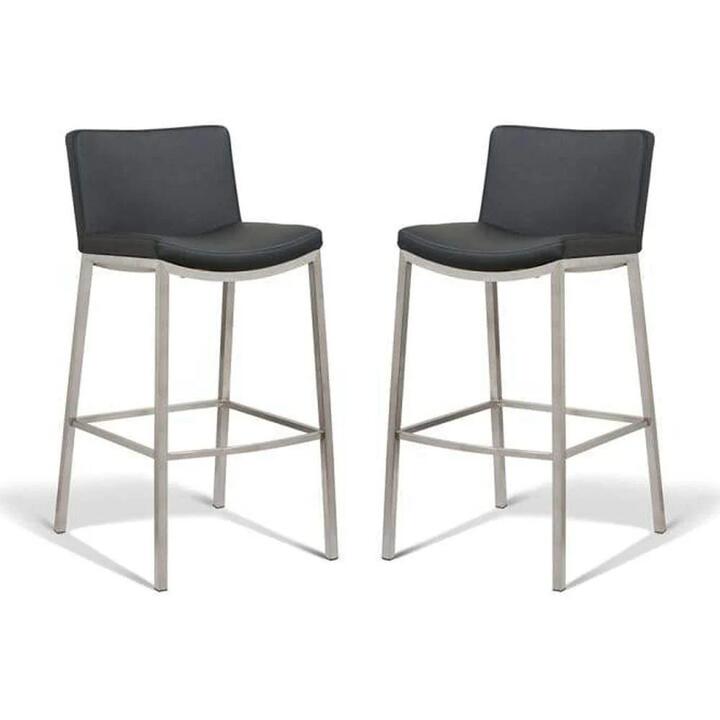 Product Description, Clean lines and contemporary styling are just a few of the benefits of this handsome bar stool. The frame is durable, sturdy and finished in a brushed stainless steel. The convenient foot rest matches the rest of the frame. For added comfort the seat and backrest are molded and covered in black PU leather. The black and silver combo is basic and will not clash with any colors or hues. These stools are so hardy they can also be used in commercial environments. Features, Stylish and comfortable piece with sleek PU leather upholstery, Brushed Stainless Steel Frame with stainless steel foot rest, Curved back gives maximum support and comfort, Solid well balanced frame gives great support, Perfect to be added for many different modern styles , Dimensions, Overall Dimension: 45W x 49D x 95H cm, Seat Size: 40W x 38D x 76H cm, Dispatch Timing, Normally dispatched within 3 business days, Notes, This item comes with 12-Months Manufacturers Warranty. Note:- Actual product colours may vary due to lighting, studio photography, room conditions, different screens on various devices. – All our furniture product are flat pack (assembly required) for safe handling purposes.