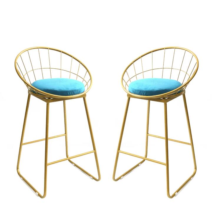 Chill and relax on this shell like bar stool and take a sip of your favourite drink. Be comfortable on the well cushioned seat and be in style on the shell like back. Put your feet up on the included footrest and be in a comfortable position as you talk and relax. Bring the Shelly Kitchen Counter Bar Stool Gold Metal Frame on your kitchen to make it much more appealing. , Features, Made from Metal and Velvet, Cushioned seat cover in Blue Velvet Finish, Gold/ Champagne Powder coated metal frame, Basket shaped frame that curves around the seat with back rest, Bar stool frame with footrest, Seat Height: 65cm, Dimensions, W 50 x D 45 x H 87 cm, Dispatch Timing, Normally dispatched within 3 business days, Notes, This item is applicable for 7-Days change of mind policy only. Note:- Actual product colours may vary due to lighting, studio photography, room conditions, different screens on various devices. – All our furniture product are flat pack (assembly required) for safe handling purposes.