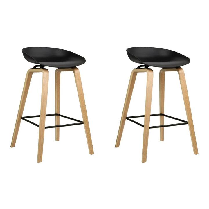 With a strong PP plastic seat, and a sleek low backrest, these chairs are the definition of modernity and durability. They feature a powder-coated metal footrest, and also anti-slip feet protectors so your floors will not get damaged when in use. Features Elegant wooden structure Solid plywood Strong PP plastic seat Reinforced base metal fixings Durable powder coating Stylish metal footrest Anti-slip feet protectors Specifications Seat: PP Plastic Legs: Solid Plywood Colour: Black Footrest: Coated metal Seat height: 67cm Package Contents 2 x Bar Stool 1 x Assembly Manual. Note:- Actual product colours may vary due to lighting, studio photography, room conditions, different screens on various devices. – All our furniture product are flat pack (assembly required) for safe handling purposes.