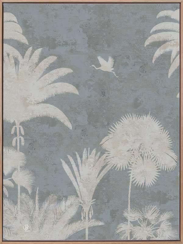 Shadow Palms Blue III Canvas Art Print – Just as the sun rises with its soft, gentle light, wildlife begin to stir, basking in the warm, early rays. This gorgeous piece focuses on simplicity with a subdued, monotone colour palette and limited details, leaving an array of shadow figures, allowing the aged texture to overlap each silhouette for a timeless feel. With its pale blue and cream white palette, Shadow Palms is striking, yet delicate on the eye, making it the perfect feature piece for any interior. Bethany Linz brings her timeless touch to Urban Road, with incredibly intricate, detailed pieces inspired by exotic wildlife and plant life. Bethany is known for her exquisitely hand painted art that's transformed into various textiles, creating an overall vintage look and feel. Many of the pieces in this collection are inspired by Indian summers, conveying warm breezes, buzzing insects, and gorgeous Indian animal studies featuring realistic details and modest compositions. A widespread colour palette focuses on understated tones, from soft pinks, yellows and blues, to rich emerald greens, and plenty of neutral clay shades, which all incorporate beautifully with many interior design styles. Disclaimer: Colours of Urban Road products may vary due to device display differences, monitor settings, inherent product variations, lighting conditions, and screen calibration. While we strive for accuracy, slight variations may occur. For any concerns, contact our customer support. Your satisfaction is our priority. STRETCHED CANVAS Urban Road's stretched canvas fine art prints are professionally printed on polycotton artist canvas, using archival inks and then stretched and gallery wrapped. This means the image is stretched around a 38mm frame to create a seamless, museum-quality finish. All stretched and box framed art prints arrive ready to hang. SHADOW BOX FRAMES We also offer the option to add a shadow box frame to your Urban Road canvas art print. A little different from a traditional framed print, the canvas sits within the box frame with a 5mm gap, creating a sophisticated shadow effect between the frame and the canvas. Our solid timber box frame mouldings are 10mm wide, and 55mm deep, and add approximately 40mm to the length and height of the listed canvas size. ROLLED CANVAS ART At Urban Road, we also offer you the option to purchase your canvas art print unframed to allow you to have it framed your own way. As with our stretched and box framed canvas products, our rolled canvas prints are professionally printed on durable, museum-quality, matte coated polycotton canvas and made to order. Our rolled canvas products are printed to the listed stretched size, and come with an additional 45mm mirrored edge plus another 60mm white border to allow for gallery wrapping.