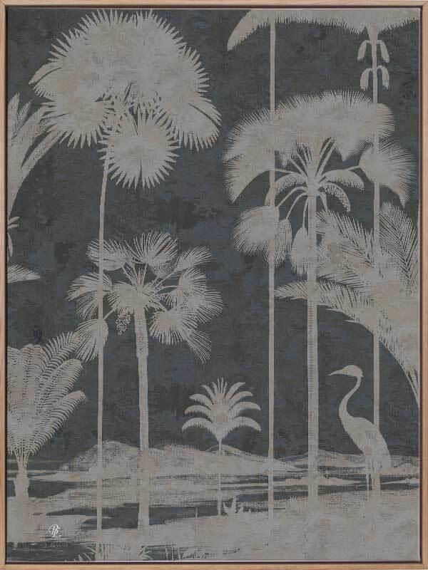 Shadow Palms Ocean II Canvas Art Print – Just as the sun rises with its soft, gentle light, wildlife begin to stir, basking in the warm, early rays. This gorgeous piece focuses on simplicity with a subdued, monotone colour palette and limited details, leaving an array of shadow figures, allowing the aged texture to overlap each silhouette for a timeless feel. With its ocean blue and cream white palette, Shadow Palms is striking, yet delicate on the eye, making it the perfect feature piece for any interior. Bethany Linz brings her timeless touch to Urban Road, with incredibly intricate, detailed pieces inspired by exotic wildlife and plant life. Bethany is known for her exquisitely hand painted art that's transformed into various textiles, creating an overall vintage look and feel. Many of the pieces in this collection are inspired by Indian summers, conveying warm breezes, buzzing insects, and gorgeous Indian animal studies featuring realistic details and modest compositions. A widespread colour palette focuses on understated tones, from soft pinks, yellows and blues, to rich emerald greens, and plenty of neutral clay shades, which all incorporate beautifully with many interior design styles. Disclaimer: Colours of Urban Road products may vary due to device display differences, monitor settings, inherent product variations, lighting conditions, and screen calibration. While we strive for accuracy, slight variations may occur. For any concerns, contact our customer support. Your satisfaction is our priority. STRETCHED CANVAS Urban Road's stretched canvas fine art prints are professionally printed on polycotton artist canvas, using archival inks and then stretched and gallery wrapped. This means the image is stretched around a 38mm frame to create a seamless, museum-quality finish. All stretched and box framed art prints arrive ready to hang. SHADOW BOX FRAMES We also offer the option to add a shadow box frame to your Urban Road canvas art print. A little different from a traditional framed print, the canvas sits within the box frame with a 5mm gap, creating a sophisticated shadow effect between the frame and the canvas. Our solid timber box frame mouldings are 10mm wide, and 55mm deep, and add approximately 40mm to the length and height of the listed canvas size. ROLLED CANVAS ART At Urban Road, we also offer you the option to purchase your canvas art print unframed to allow you to have it framed your own way. As with our stretched and box framed canvas products, our rolled canvas prints are professionally printed on durable, museum-quality, matte coated polycotton canvas and made to order. Our rolled canvas products are printed to the listed stretched size, and come with an additional 45mm mirrored edge plus another 60mm white border to allow for gallery wrapping.