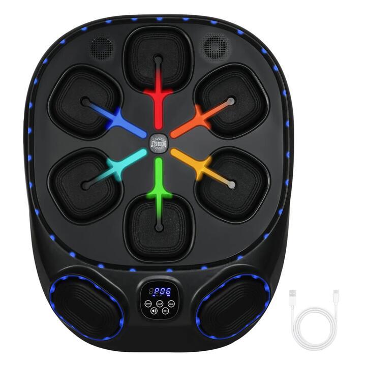 Description, Get a dynamic workout at home with the smart music boxing machine, designed for all ages and fitness levels. Featuring 10 adjustable speeds and 9 flash modes, you can easily customize your workout from a gentle warm-up to an intense boxing session. The expanded punching area includes 6 primary surfaces and 2 unlockable zones, offering more punch angles for a versatile training experience. The soft, large hitting area ensures safety by protecting your hands and wrists, even during off-target punches. Stay motivated with Bluetooth connectivity, allowing you to play your favorite music while tracking your progress. Installation is a breeze with two mounting options—hook-and-loop fastener or wall mount. Perfect for use in any room, whether in the living room, bedroom, or office, this boxing machine is a great way to relieve stress and stay active without the need for a gym. Ideal gift for anyone looking to have fun and stay fit at home!, Key features, Bluetooth connection, 10 different speeds, 9 different modes, Smart counting, Soft foaming, 6+2 More striking surfaces, One-click music playback, Hook and loop fastener mounted, Suspended on wall, Specifications, Brand: Centra Material:PU Foam,ABS,PET,EVA Length of USB charging cable: 200cm Punching music machine dimension: 48cm x 61cm x11cm (L x W x H) Colour: Black, Package Contents, 1 x Centra Music Boxing Machine, 1 x InstallationTools, 1 x USB Charging Cable, 4 x Hook And Loop Fasteners, 1 x Instruction Manual. Note:- Actual product colours may vary due to lighting, studio photography, room conditions, different screens on various devices.