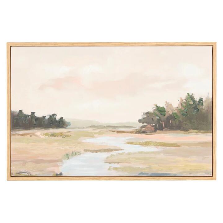 Society Home is an inviting and sophisticated collection, tied together by common threads of elegance and refinement. Society Home is an inviting and sophisticated collection, tied together by common threads of elegance and refinement. Decorative wall art is the perfect way to bring blank walls to life. This Swansea Hand Painted Wall Art features a hand-painted soothing wilderness scene of still water in pink and blue hues, encased in a wooden frame. Features• Place it on a wall or entryway anywhere within the home to brighten any space and create a dramatic effect• Enrich your home with this stunning Swansea Hand Painted Wall Art from Society HomeMaterialsWood, CanvasDimensions45cm x 2cm x 30cmManufacturedMade in China