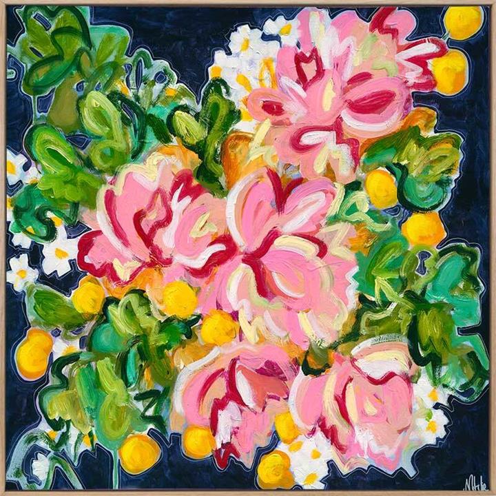 Spellbound Canvas Art Print – This beautifully composed and painted abstract floral piece features vibrant colours in a striking palette of pink, green and yellow against a deep blue background. The artwork is a celebration of light, life and the magic of love. Disclaimer: Colours of Urban Road products may vary due to device display differences, monitor settings, inherent product variations, lighting conditions, and screen calibration. While we strive for accuracy, slight variations may occur. For any concerns, contact our customer support. Your satisfaction is our priority. STRETCHED CANVAS Urban Road's stretched canvas fine art prints are professionally printed on polycotton artist canvas, using archival inks and then stretched and gallery wrapped. This means the image is stretched around a 38mm frame to create a seamless, museum-quality finish. All stretched and box framed art prints arrive ready to hang. SHADOW BOX FRAMES We also offer the option to add a shadow box frame to your Urban Road canvas art print. A little different from a traditional framed print, the canvas sits within the box frame with a 5mm gap, creating a sophisticated shadow effect between the frame and the canvas. Our solid timber box frame mouldings are 10mm wide, and 55mm deep, and add approximately 40mm to the length and height of the listed canvas size. ROLLED CANVAS ART At Urban Road, we also offer you the option to purchase your canvas art print unframed to allow you to have it framed your own way. As with our stretched and box framed canvas products, our rolled canvas prints are professionally printed on durable, museum-quality, matte coated polycotton canvas and made to order. Our rolled canvas products are printed to the listed stretched size, and come with an additional 45mm mirrored edge plus another 60mm white border to allow for gallery wrapping.