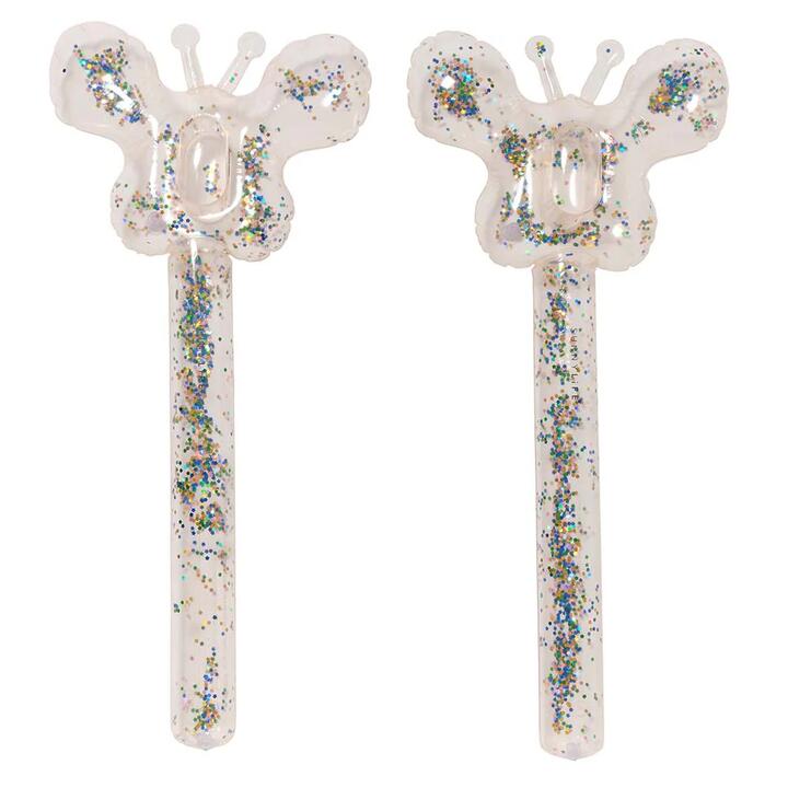 Just add water and bring playtime to life. The Kids Inflatable Noodles are designed to capture the imaginations of young children. Features• Max. weight 40kg / 88lbs per noodle. • Internal multi colour glitter. • Special valve designed to prevent glitter from escaping inflatable. • Includes repair patch in case of punctures. • Made from durable, non-toxic Phthalate free PVC. • This is not a lifesaving device, use under constant competent supervision. Our floats and inflatables carry important safety labels that may not be shown in all photography. What Am I Buying 2x Inflatable wands Materials 100% PVC
