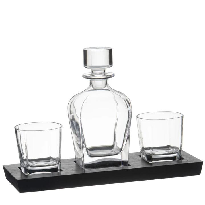 Modern elegance meets timeless design in the Tempa Harvey 4 Piece Whisky Set. Featuring a distinctive black base, the range includes whisky sets and the all the essentials for your wine experience. Whether it's savouring a single malt or serving in style, this range delivers a bold statement with classic form. Features• Designed for both functionality and visual appeal • Each piece sits neatly in a custom-fit black tray • Ideal for gifting What Am I Buying• 3 x Whiskey Glasses • 1 x Decanter Materials Crystal/Bamboo