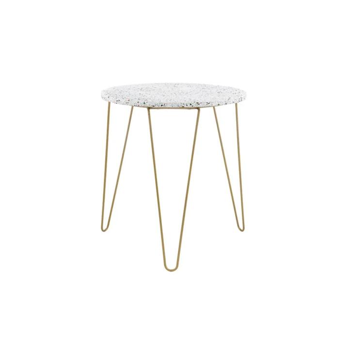 Create the perfect home for your favourite cup of tea or coffee thanks to this terrazzo side stable that's crafted with a unique terrazzo top that will take pride of place in your lounge. Terrazzo side table, 2cm Thick circular terrazzo speckled tabletop, Eye-catching triangular-shaped supports, Stable powder-coated iron legs, Quick and easy to assemble, Sophisticated and elegant, the trendy speckled tabletop and minimalist triangular legs of the Tina Terrazzo Side Table perfectly complement any home's furnishings. Elevate your lounge decor, With a gorgeous terrazzo top and versatile circular design that fits snugly into the corner of the lounge or alongside your favourite couch, this terrazzo side table is a stunning place to rest your cup of tea or coffee. Enduring elegance, Crafted from sturdy powder-coated iron, the eye-catching triangular legs provide a secure and durable base for the thick terrazzo tabletop, ensuring that this terrazzo side table will be an enduring lounge room staple. Dimension: D 47 x W 47 x H 52CM. Note:- Actual product colours may vary due to lighting, studio photography, room conditions, different screens on various devices. – All our furniture product are flat pack (assembly required) for safe handling purposes.