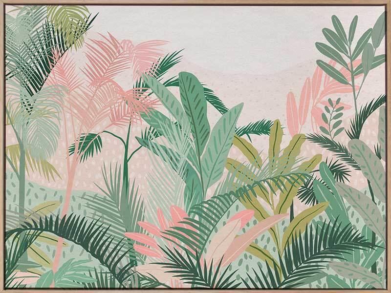 Tropical Mojito Canvas Art Print – Playful and feminine, this soft and ethereal spin on the classic tropical style features layers of trees, palms and foliage. The colour palette showcases soft pink, warm brown and mustard yellow. Disclaimer: Colours of Urban Road products may vary due to device display differences, monitor settings, inherent product variations, lighting conditions, and screen calibration. While we strive for accuracy, slight variations may occur. For any concerns, contact our customer support. Your satisfaction is our priority. STRETCHED CANVAS Urban Road's stretched canvas fine art prints are professionally printed on polycotton artist canvas, using archival inks and then stretched and gallery wrapped. This means the image is stretched around a 38mm frame to create a seamless, museum-quality finish. All stretched and box framed art prints arrive ready to hang. SHADOW BOX FRAMES We also offer the option to add a shadow box frame to your Urban Road canvas art print. A little different from a traditional framed print, the canvas sits within the box frame with a 5mm gap, creating a sophisticated shadow effect between the frame and the canvas. Our solid timber box frame mouldings are 10mm wide, and 55mm deep, and add approximately 40mm to the length and height of the listed canvas size. ROLLED CANVAS ART At Urban Road, we also offer you the option to purchase your canvas art print unframed to allow you to have it framed your own way. As with our stretched and box framed canvas products, our rolled canvas prints are professionally printed on durable, museum-quality, matte coated polycotton canvas and made to order. Our rolled canvas products are printed to the listed stretched size, and come with an additional 45mm mirrored edge plus another 60mm white border to allow for gallery wrapping.