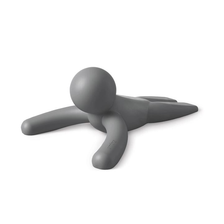 A playful and helpful tool, the Umbra Buddy Charcoal Doorstop features Umbras signature Buddy figurine lying on the floor. This imaginative door stopper appears as if Buddy is stuck underneath the door, helping keep your door open! Made of soft-touch thermoplastic rubber, Buddy Doorstop wont skid or scratch your floors and will keep the door wedged in place. Features• Prevent your doors from unexpectedly closing with Buddy Doorstop• Makes a great choice for a housewarming present• Fun and cheerful designMaterialsPlasticDimensions11cm x 7cm x 20cm