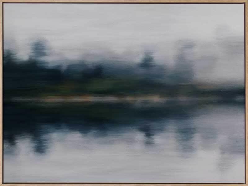 Upon Reflection Canvas Art Print: A blurred landscape artwork featuring a grey sky and a dark, green and teal tree line reflected in a lake. 2019 AUTUMN/WINTER COLLECTION: ODYSSEY Disclaimer: Colours of Urban Road products may vary due to device display differences, monitor settings, inherent product variations, lighting conditions, and screen calibration. While we strive for accuracy, slight variations may occur. For any concerns, contact our customer support. Your satisfaction is our priority. STRETCHED CANVAS Urban Road's stretched canvas fine art prints are professionally printed on polycotton artist canvas, using archival inks and then stretched and gallery wrapped. This means the image is stretched around a 38mm frame to create a seamless, museum-quality finish. All stretched and box framed art prints arrive ready to hang. SHADOW BOX FRAMES We also offer the option to add a shadow box frame to your Urban Road canvas art print. A little different from a traditional framed print, the canvas sits within the box frame with a 5mm gap, creating a sophisticated shadow effect between the frame and the canvas. Our solid timber box frame mouldings are 10mm wide, and 55mm deep, and add approximately 40mm to the length and height of the listed canvas size. ROLLED CANVAS ART At Urban Road, we also offer you the option to purchase your canvas art print unframed to allow you to have it framed your own way. As with our stretched and box framed canvas products, our rolled canvas prints are professionally printed on durable, museum-quality, matte coated polycotton canvas and made to order. Our rolled canvas products are printed to the listed stretched size, and come with an additional 45mm mirrored edge plus another 60mm white border to allow for gallery wrapping.