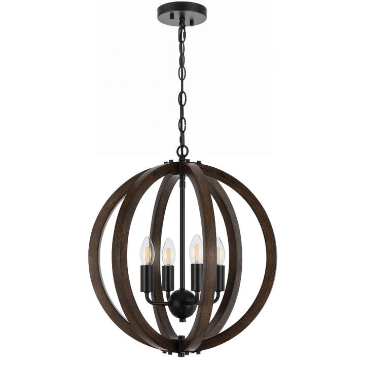 Craftsmanship meets beauty in the thoughtfully designed Vestal. Every element has been thoughtfully selected to ensure enduring style. Thoughtfully tailored to inspire comfort and elegance. A versatile addition that highlights your homes personality distinctly. Every glance reveals new depths of its impeccable detailing. Craft a memorable atmosphere with this exquisite lighting selection. Specifications, Fixture Colour: Black,Walnut, Fixture Finish: Matte,Wood Tones, Fixture Material: Iron,Wood, Cable Length: cm, Globe Type: E14, Globe Included: No, Wattage: 4 x 25w (max), Voltage Input: 240V, IP Rating: IP20, Dimensions, Fixture Height (cm): 50.5, Fixture Diameter (cm): 45, Dispatch Timing, Normally dispatched within 3 business days, Notes. Note:- Actual product colours may vary due to lighting, studio photography, room conditions, different screens on various devices.