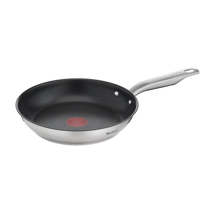 Reach your potential in the kitchen when cooking with the Tefal Virtuoso Induction Stainless Steel Frypan. With incredibly effective non-stick coating that lasts three times longer than regular, the Tefal Virtuoso Induction Stainless Steel Frypan offers great results with every use. Tefals iconic thermos-signal technology lets you know when the pan is at optimum temperature to start cooking so you can expect premium texture colour and taste. The resilient stainless-steel body and extra-thick bonded base is resistant to warping over time and is conveniently compatible with all cooktops, including induction. Its a no brainer to upgrade your collection with the fantastic Tefal Virtuoso Induction Stainless Steel Frypan. Features • Non-stick coating ensures non-stick performance that lasts up to 3 times longer• THERMO-SIGNAL technology indicates the ideal starting cooking temperature to guarantee perfect texture, colour and taste• The extra-thick, high-impact bonded base prevents deformation over time• Compatible with all stovetops, including induction, for total versatility• The elegant brushed finish adds a refined touch to your kitchen• 10-year guarantee Dimensions • 24cm• 28cm• 30cm Materials Stainless Steel What Am I Buying 1 x Frypan