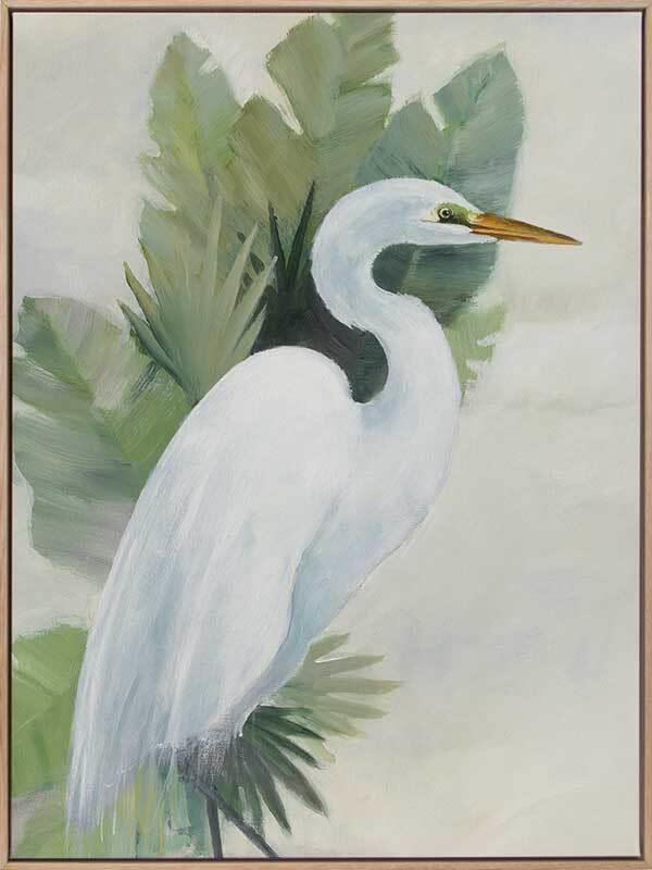 Wandering Egret I Canvas Art Print – Soft and delicately balanced, this coastal inspired artwork features a beautifully painted white egret bird against lush green foliage, and a gentle cream-coloured background. Pairs with Wandering Egret II. Disclaimer: Colours of Urban Road products may vary due to device display differences, monitor settings, inherent product variations, lighting conditions, and screen calibration. While we strive for accuracy, slight variations may occur. For any concerns, contact our customer support. Your satisfaction is our priority. STRETCHED CANVAS Urban Road's stretched canvas fine art prints are professionally printed on polycotton artist canvas, using archival inks and then stretched and gallery wrapped. This means the image is stretched around a 38mm frame to create a seamless, museum-quality finish. All stretched and box framed art prints arrive ready to hang. SHADOW BOX FRAMES We also offer the option to add a shadow box frame to your Urban Road canvas art print. A little different from a traditional framed print, the canvas sits within the box frame with a 5mm gap, creating a sophisticated shadow effect between the frame and the canvas. Our solid timber box frame mouldings are 10mm wide, and 55mm deep, and add approximately 40mm to the length and height of the listed canvas size. ROLLED CANVAS ART At Urban Road, we also offer you the option to purchase your canvas art print unframed to allow you to have it framed your own way. As with our stretched and box framed canvas products, our rolled canvas prints are professionally printed on durable, museum-quality, matte coated polycotton canvas and made to order. Our rolled canvas products are printed to the listed stretched size, and come with an additional 45mm mirrored edge plus another 60mm white border to allow for gallery wrapping.
