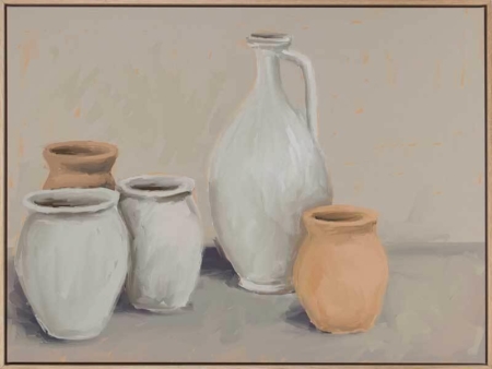 Water of Life Canvas Art Print – This painterly artwork features clay jars together with a water jug. The colour palette of grey tones from the jug and two jars contrasts with the beige tones of another two jars. The group of clay jars and jug is set amidst a grey background. Have you been daydreaming of idle days where you have memories of sweet nothingness? Then this collection is for you! Take a step back to your childhood memories of cordial and scrumptious cookies. Our Citrus still life collection brings you an appetite for all things sour and sweet, creating a fresh vibe to your home. Inspired by afternoon tea parties and luxurious Sunday brunches, our handpainted Citrus collection will surely put vibrance and light-heartedness into your home. Disclaimer: Colours of Urban Road products may vary due to device display differences, monitor settings, inherent product variations, lighting conditions, and screen calibration. While we strive for accuracy, slight variations may occur. For any concerns, contact our customer support. Your satisfaction is our priority. STRETCHED CANVAS Urban Road's stretched canvas fine art prints are professionally printed on polycotton artist canvas, using archival inks and then stretched and gallery wrapped. This means the image is stretched around a 38mm frame to create a seamless, museum-quality finish. All stretched and box framed art prints arrive ready to hang. SHADOW BOX FRAMES We also offer the option to add a shadow box frame to your Urban Road canvas art print. A little different from a traditional framed print, the canvas sits within the box frame with a 5mm gap, creating a sophisticated shadow effect between the frame and the canvas. Our solid timber box frame mouldings are 10mm wide, and 55mm deep, and add approximately 40mm to the length and height of the listed canvas size. ROLLED CANVAS ART At Urban Road, we also offer you the option to purchase your canvas art print unframed to allow you to have it framed your own way. As with our stretched and box framed canvas products, our rolled canvas prints are professionally printed on durable, museum-quality, matte coated polycotton canvas and made to order. Our rolled canvas products are printed to the listed stretched size, and come with an additional 45mm mirrored edge plus another 60mm white border to allow for gallery wrapping.