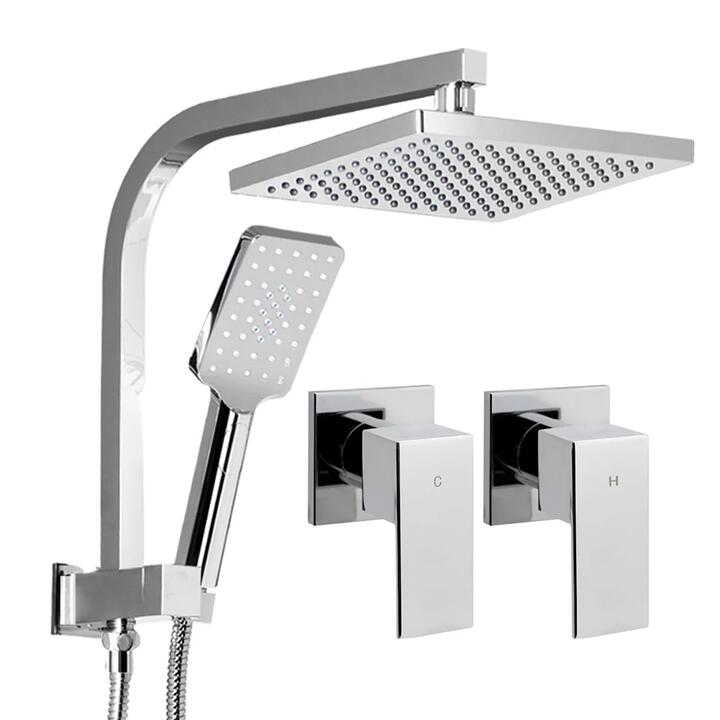 You will get a top quality fixed 8" shower head that simulates rainfall for a very soothing shower plus a handheld shower head with up to three spray patterns to let you target the water at specific areas with varying intensities. Made with a solid brass body and finished in premium chrome, the durable fixed shower head also features a built-in brass diverter to prevent leakage. The handheld shower head has a 1.5m stainless steel water hose to allow flexible use. And for a perfect mix of the right water temperature, our shower taps make it easy for you. The solid brass construction make these taps absolutely smooth and durable with a drip-free 35mm ceramic cartridge to prevent leakages. The brilliant chrome finish actually comprises a multi-layer finishing process with zinc, nickel and brass plating. The taps also have hot and cold markings for hassle-free use. Features Shower head: WELS registration number: S16588 Licence number: 1513 WELS star rating (overhead shower): 3-star and 9.0L/min WELS star rating (hand shower): Not Star Rate and 6.0L/min AU standard: AS/NZS 6400:2016 Durable solid brass body Premium chrome finish 8" Overhead shower head 3-spray pattern handheld shower head Durable solid brass diverter 1.5m stainless steel water hose G1/2" female end, Australian standard Easy to assemble 5-Year warranty for the rail, 2-year warranty for the heads Shower taps Hot and cold shower taps WaterMark certified Complies with Australian standard AS/NZS 3718 Durable solid brass body Multi-layer finishing process Premium chrome finish Drip-free 35mm ceramic cartridge 5-year warranty, Specifications: Number of package boxes: 2 Assembly required: Yes Shower head: Material: Brass, stainless steel, ABS plastic Overhead shower head dimensions: 20cm x 20cm Handheld shower head dimensions: 12cm x 8cm Water hose length: 1.5m Overall dimensions: refer to images Shower taps Material: Brass Surface: Chrome finished Overall dimensions: refer to image, Package Content Shower head x1 Taps set x1, This product comes with 5 years warranty. Note:- Actual product colours may vary due to lighting, studio photography, room conditions, different screens on various devices.