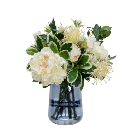 There are no holds barred with this exquisite arrangement of peony and rose mixed arrangement . This mixed arrangement adventurous diversity of textures and springtime colors will thrill the eye — guaranteed. So, if you need a gift for a person who wants it all, go with this peony and rose mixed arrangement in glass.