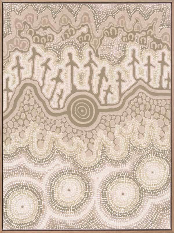 Winmara Canvas Art Print – Full of life and energy, this Aboriginal Artwork brings a sense of character and movement to your space with an alluring array of lines, dots, and circular shapes created using traditional Aboriginal Art techniques. With a neutral palette of soft beige tones, this modern Aboriginal Artwork will make a beautiful statement in your space with its dynamic details and adventurous design. Urban Road is committed to investing a stream of ongoing financial support back to our Artist community. For every artwork sold, a percentage of the sale price goes directly back to the Indigenous Artist. Bringing you a brand-new range of traditional Aboriginal art for sale, the sixth instalment to our Aboriginal wall art Australia collection takes an intricate look at Dreamtime storytelling by several coveted Aboriginal artists. Each of these modern Aboriginal artworks have their own story and meaning, with the artists drawing on upon their personal life experiences, exuding strength, resilience, and a profound sense of connection. Immerse yourself in a vibrant spectrum of colours, from bright and warm to subdued, soft and neutral, making this collection an ideal complement to any interior style. The use of striking patterns and shapes bring a vibrant, moving energy to any room, with the option for a framed canvas print to elevate your space. Buy an Aboriginal artwork online today and honour the Aboriginal culture and the remarkable artistic traditions that have shaped generations. Disclaimer: Colours of Urban Road products may vary due to device display differences, monitor settings, inherent product variations, lighting conditions, and screen calibration. While we strive for accuracy, slight variations may occur. For any concerns, contact our customer support. Your satisfaction is our priority. STRETCHED CANVAS Urban Road's stretched canvas fine art prints are professionally printed on polycotton artist canvas, using archival inks and then stretched and gallery wrapped. This means the image is stretched around a 38mm frame to create a seamless, museum-quality finish. All stretched and box framed art prints arrive ready to hang. SHADOW BOX FRAMES We also offer the option to add a shadow box frame to your Urban Road canvas art print. A little different from a traditional framed print, the canvas sits within the box frame with a 5mm gap, creating a sophisticated shadow effect between the frame and the canvas. Our solid timber box frame mouldings are 10mm wide, and 55mm deep, and add approximately 40mm to the length and height of the listed canvas size. ROLLED CANVAS ART At Urban Road, we also offer you the option to purchase your canvas art print unframed to allow you to have it framed your own way. As with our stretched and box framed canvas products, our rolled canvas prints are professionally printed on durable, museum-quality, matte coated polycotton canvas and made to order. Our rolled canvas products are printed to the listed stretched size, and come with an additional 45mm mirrored edge plus another 60mm white border to allow for gallery wrapping.