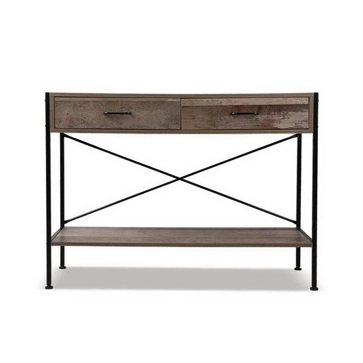 With its rustic looks and alluring presence, our Hamlet Console Table is the perfect entry piece to welcome your visitors with style and panache. Crafted from eco-friendly15mm thick particle board and black-coated metal, this eclectic Console Table is well proportioned and durable in every aspect. It is also designed to stand well through the test of time with its criss-cross brace support and heavy-duty finishing. In terms of convenience, two spacious drawers let you store home essentials that are always easy to find. Not least, a bottom shelf also allows you to display collectibles, memorabilia or anything of your fancy for a pleasant entrance. Be creative with your decor, for this exceptional furniture is more than just a hallway stunner. The Hamlet Console Table would be at home anywhere in your domicile. Get yours today. WARNING Children have died from furniture tipover. ALWAYS secure this furniture with an anchor device. NEVER allow children to stand, climb or hang on drawers, doors, or shelves. Features 15mm Particle Board Metal tube legs 2-tier design Smooth anti-rust runners Anti-scratch floor protectors Criss-cross brace support Two smooth drawers Metal handles Easy to maintain and clean Easy assembly Specifications: Brand: Artiss Material: 15mm Particle board, Paper veneer Dimension: 100x35x74.5cm Colour: as picture Assembly Required: Yes Number of packages: 1 Package Content Artiss Console Table x 1 Assembly Manual x 1 This product comes with 1 year warranty. Note:- Actual product colours may vary due to lighting, studio photography, room conditions, different screens on various devices. – All our furniture product are flat pack (assembly required) for safe handling purposes.