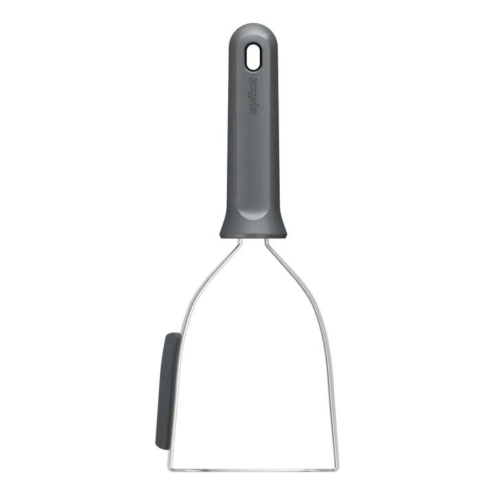 The Zyliss Potato Masher is perfect for mashing potato or carrots into a mash or puree. The comfortable handle doesn't leave you wish a sore handle after the repetitive motion. Features• The integrated silicone scraper allow you to scrape puree off the sides of the pot• The eco handle is made from up to 50% wheat straw material• Robust stainless steel masher turns potato into creamy mash in no time at all• You can grip the handle in a variety of ways & use itMaterials Stainless Steel, Wheat Straw Plastic, SiliconeDimensions7.6cm x 11cm x 25.4cm